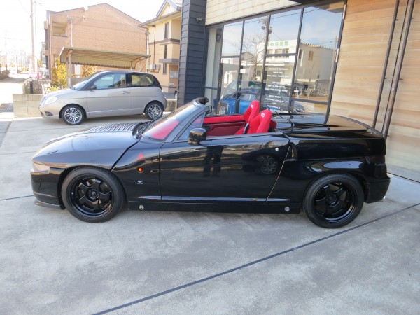 ■走行40,154km■検31年9月■LHD■ブラック/カーボン/ネイビートップ■レッドインテリア■NO.012号車■カーボンフロントフードパネル■カーボンフロントリップスポイラー■17inアルミホイール■Aragostaサスペンションキット■ステンレスサイレンサー■エアインテークキット■SPARCOバケットシート■オリジナルパーツ付属(フロントフードパネル、シート2脚、KONIサスペンション、アルミホイール&タイヤ)
