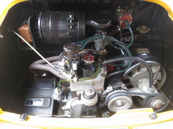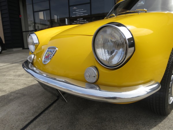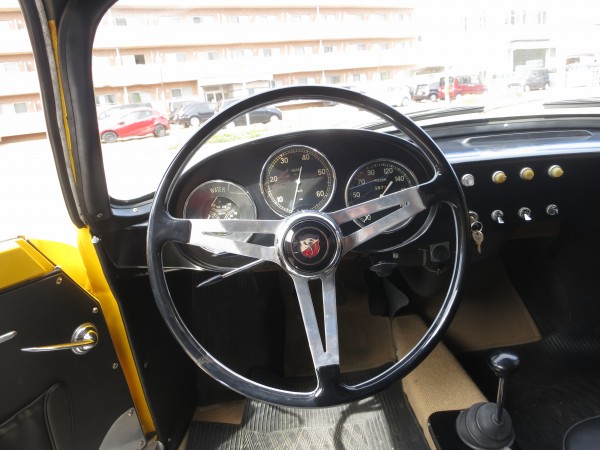 ■走行7,423km■検2年付き■LHD■イエロー■ブラックインテリア■4M/T■レストア・整備済■スチールホイール&ハブキャップ■135/80-12NEWタイヤ■アルミF&Rバンパー■JAEGERメーター■ABARTHエボナイトステアリングホイール■CARRELLOヘッドランプ■WEBER 32IMPE