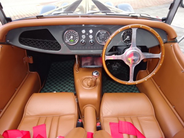 ■走行8,325km■検4年5月■RHD■グレー■キャメルブラウンインテリア■正規輸入車■ファクトリーメイド限定仕様■2シーター■Ford Sigma 1.6L エンジン■5F M/T■ブラックワイヤーホイール&クロームスピンナー■GAZアジャスタブルダンパー■caparo 4ポッドブレーキキャリパー■Aero Racing S/Sスポーツサイレンサー■ファクトリーメイドロールバー■レザースポーツシート■Sabelt 4Pt ターンバックルシートハーネス■ラウンドクラシックミラー■モトリタ4スポークウッドステアリング■リアキャリア■バッテリーカットオフスイッチ■フルウェザーエクイップメント(サイドスクリーン、ソフトトップ、トノカバー)■HDDナビゲーション■ETC■純正工具セット、Book、スペアキー付属